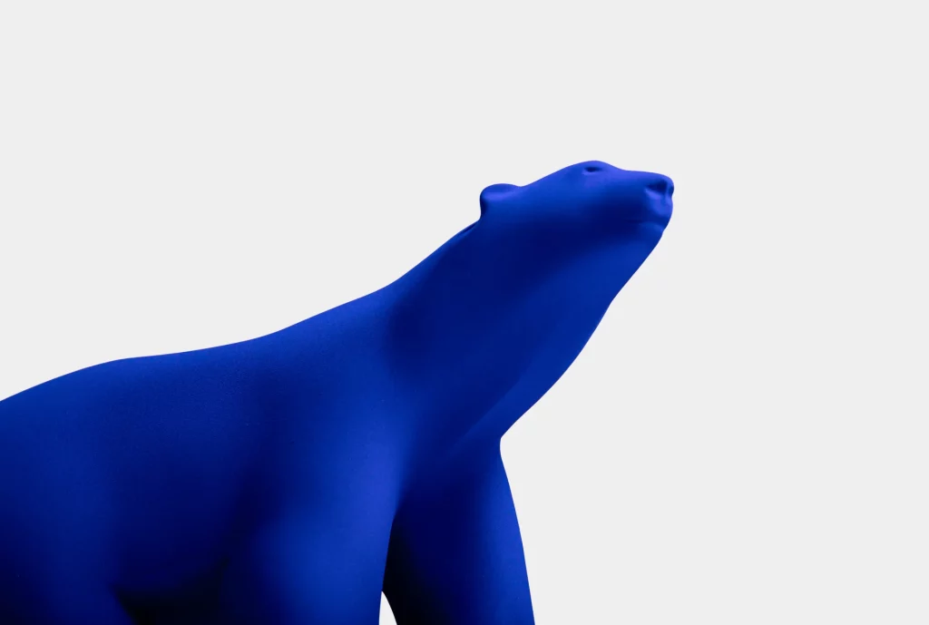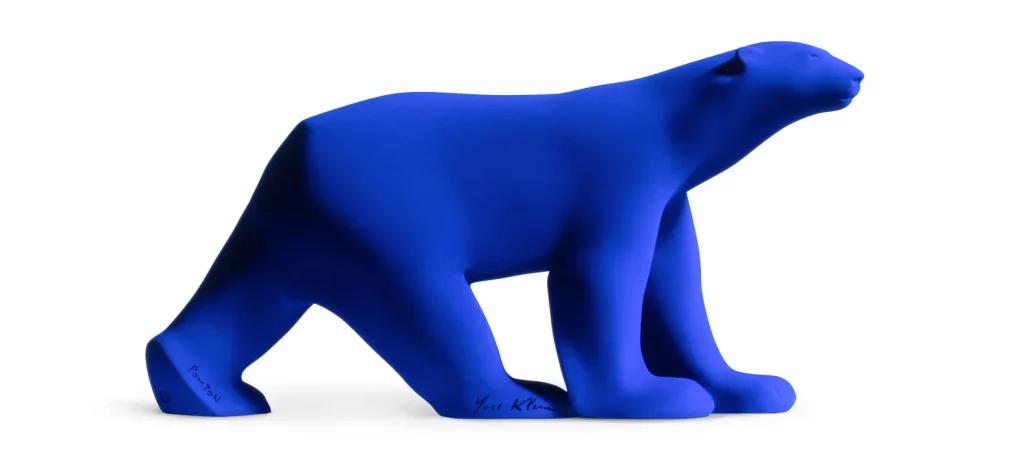 En 2022, 100 ans après son succès au Salon d’Automne, l’Ours blanc de François Pompon rencontre le bleu d’Yves Klein. L’un a capté l’essence de la forme, l’autre celui de la couleur et par-delà, l’essence de l’art. L’art du réel, de la liberté, de la vie.